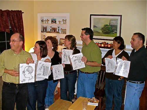 A: I average about 40 caricatures in an hour. Since the caricatures are profile from the neck up, the sketch develops quickly and only takes about a minute per person. Show moreI have been known to draw even more people per hour than I quote, but it also depends on how quickly people get in and out of my chair, their age, if they are chatty, etc. Because I draw the caricature so fast, a crowd usually gathers behind me to watch the caricature take shape. So, not only do your guests get to take a picture home with them, but I provide fun entertainment for all of the guests. Hide